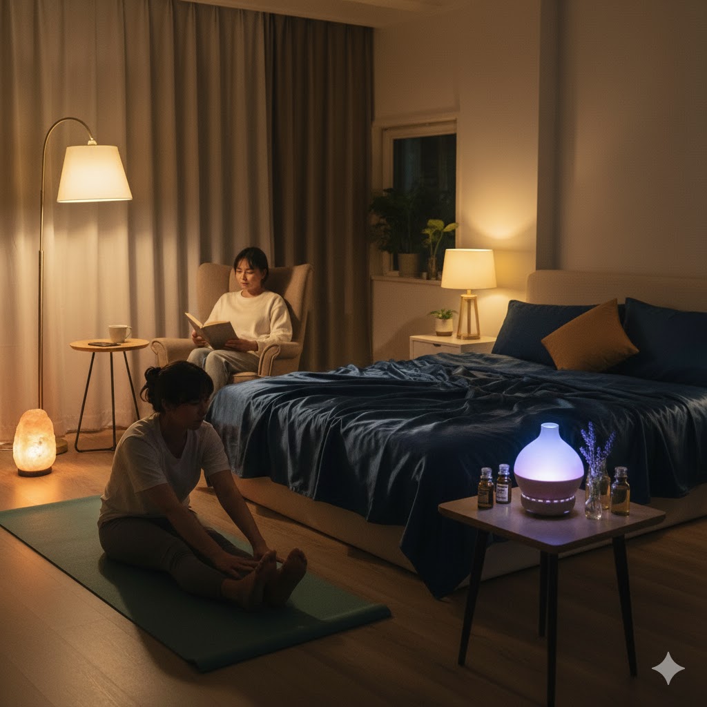 寝る前のリラックスタイムを設けることがポイントです。軽いストレッチや深呼吸、ハーブティーなどを取り入れると、自然な眠気を促進します。また、寝室の環境も大切です。暗く静かで、適温(約18〜22℃)の環境が理想的です。寝具の清潔さや寝心地も、眠りの質に影響します。