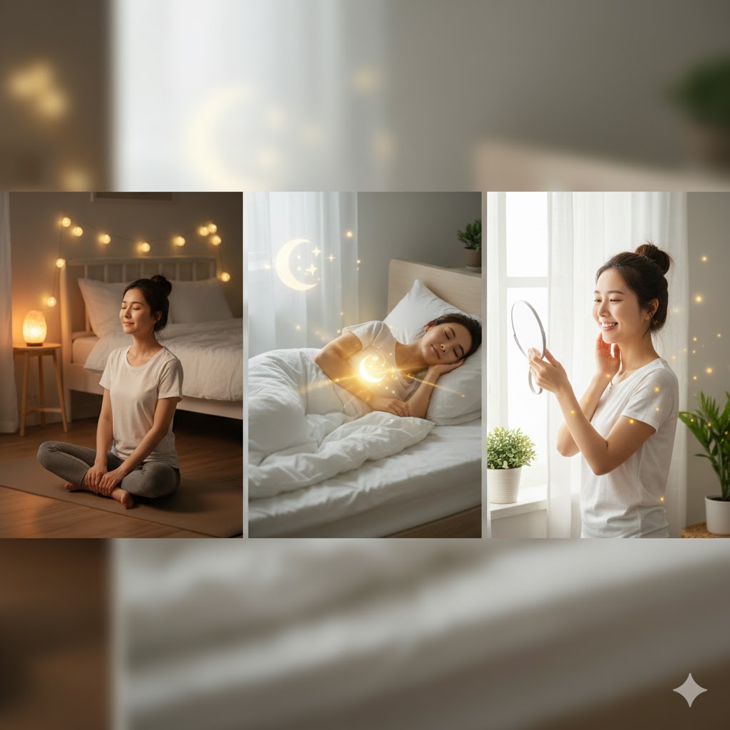 睡眠中には成長ホルモンや美容ホルモンが分泌され、肌や体の修復が行われます。質の高い睡眠を得るためには、就寝1時間前にスマートフォンやテレビの光を避け、照明を落としてリラックスできる環境を整えます。就寝前の軽いストレッチや深呼吸、ハーブティーも入眠を助けます。寝室は18〜22℃、湿度50〜60%を目安に整えると快適です。