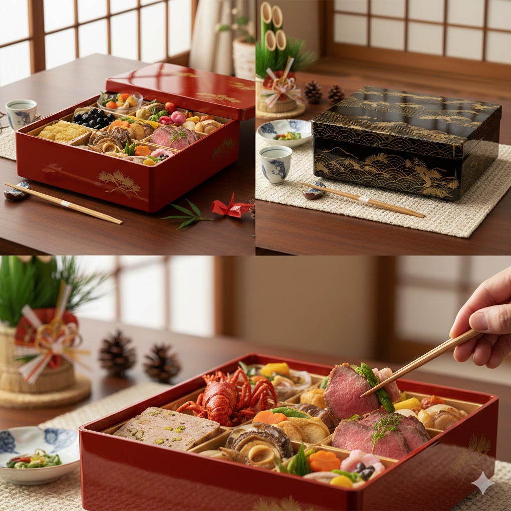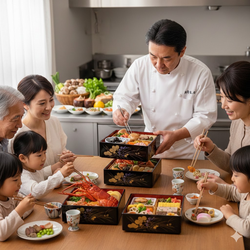 - 目で楽しむ美しさ: 料理の盛り付けにも、シェフの美意識が反映されています。彩り豊かで華やかな重箱は、お正月の食卓を一層豪華に彩ります。